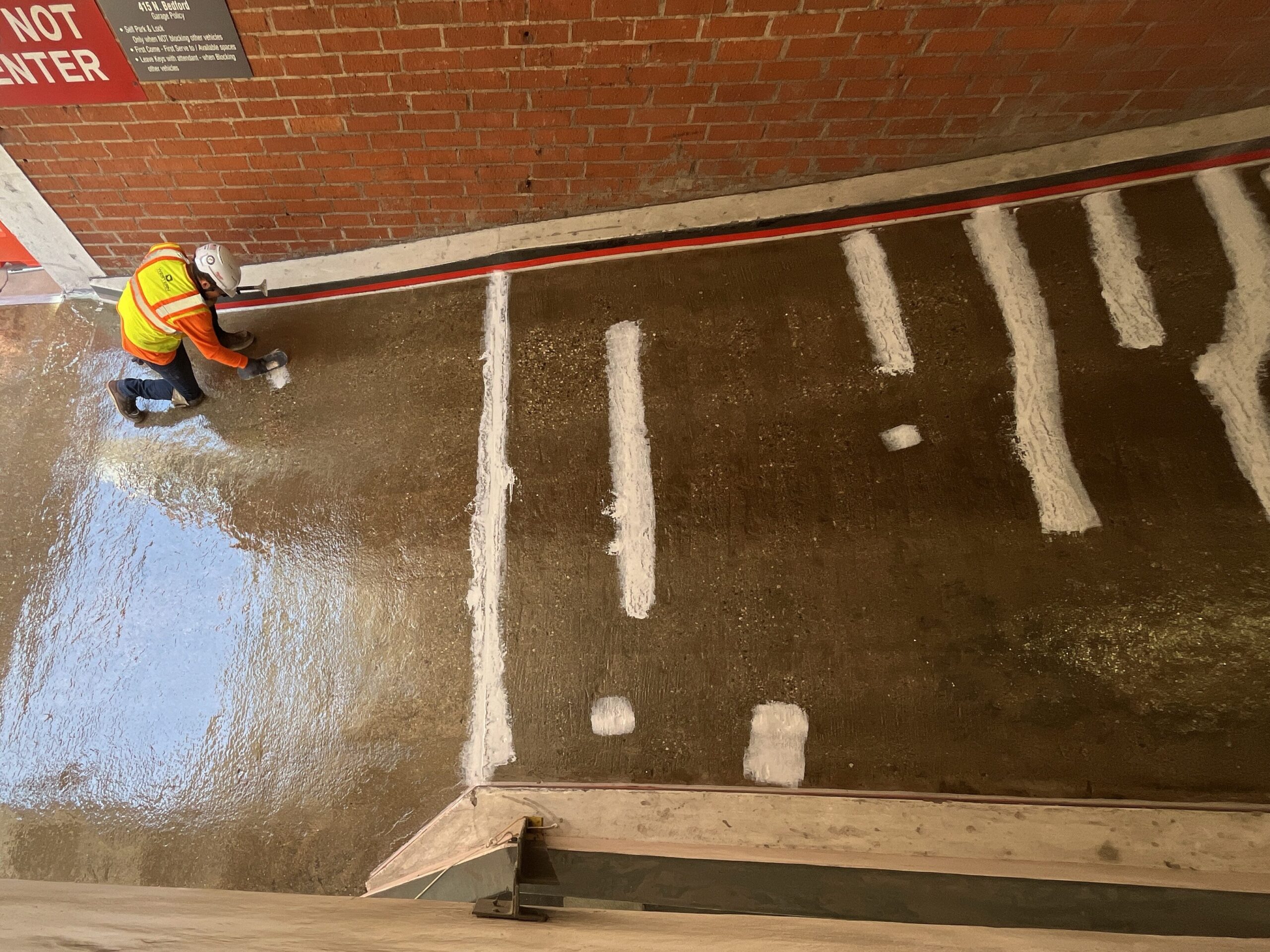 Western’s crews worked on coating one ramp at a time, which required the other ramp to be closed for the duration of the work, leading to traffic jams at the only point of access to the garage.