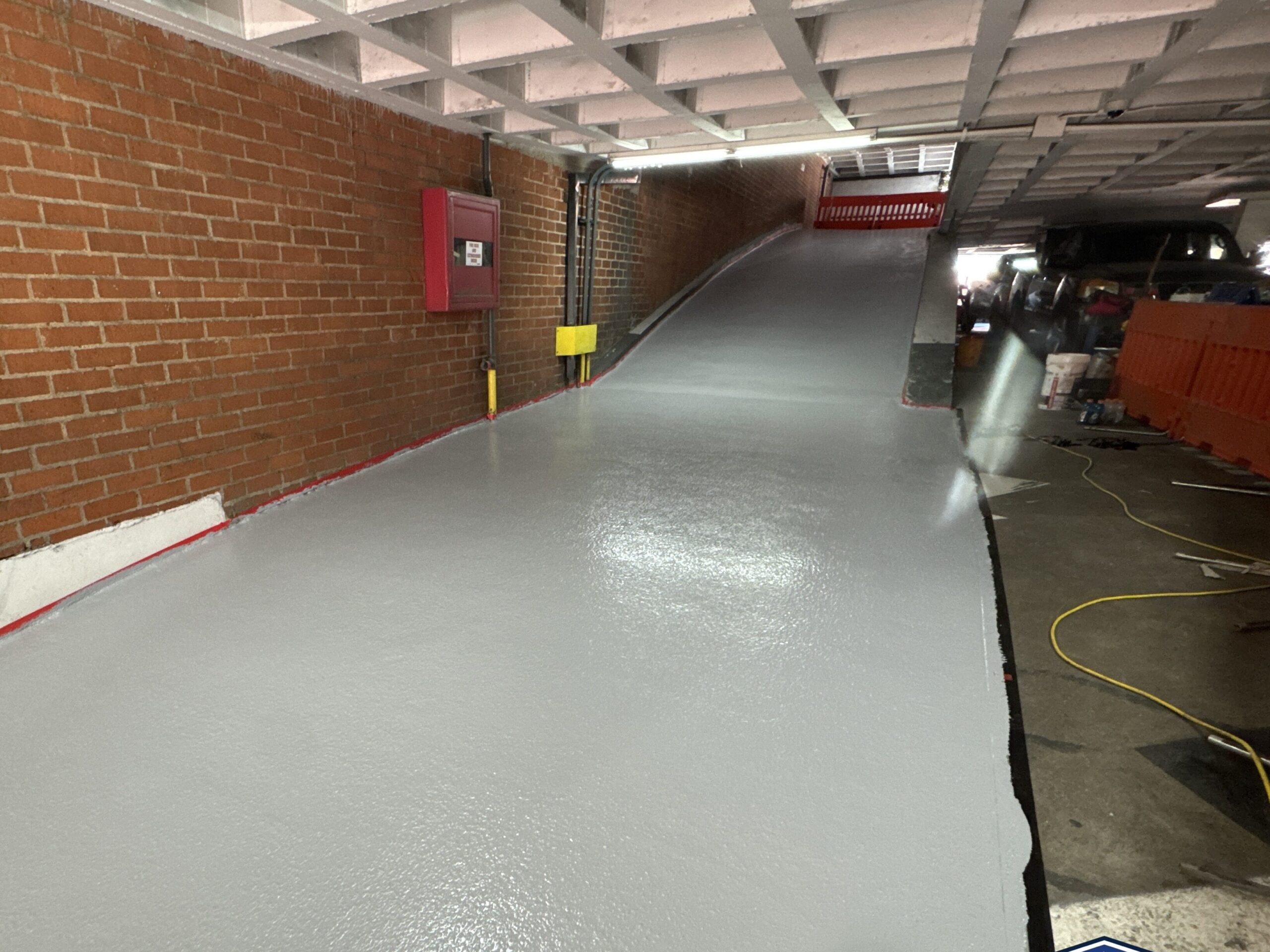 Owner WellTower hired Western in May 2025 to install Sika’s new ramp-grade deck coating over a pair of the garage’s steel ramps. Water intrusion inside storage areas below the ramps had been reported for a couple of years.