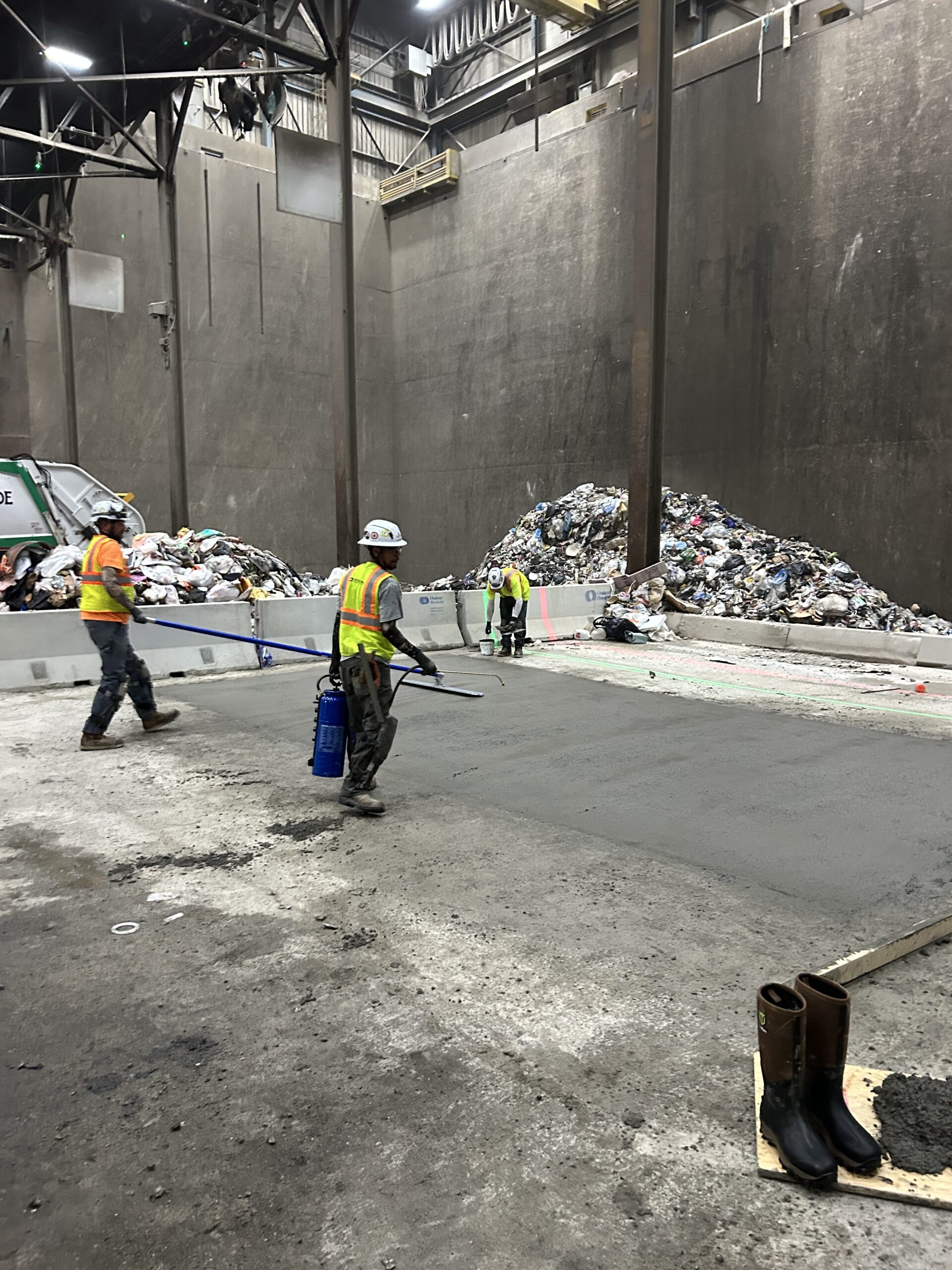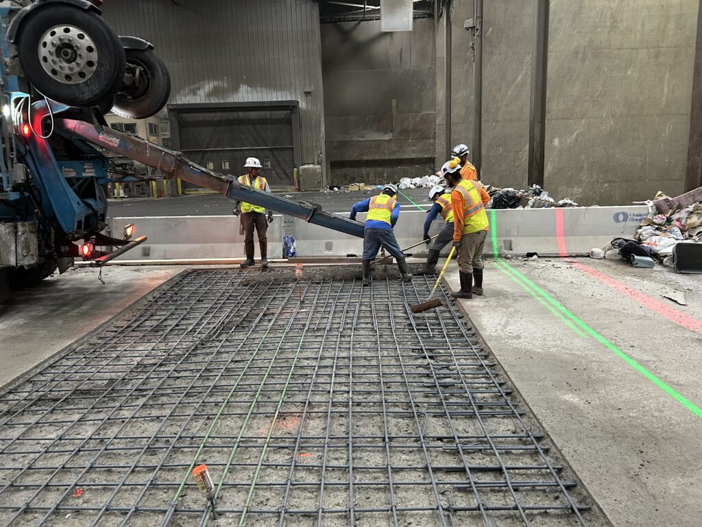 The facility’s tipping floor, where trash trucks and front loaders enter and dump their loads onto as temporary storage before going to the incinerator, is made of highly durable concrete to withstand constant impact, abrasion and corrosive liquids from the waste.