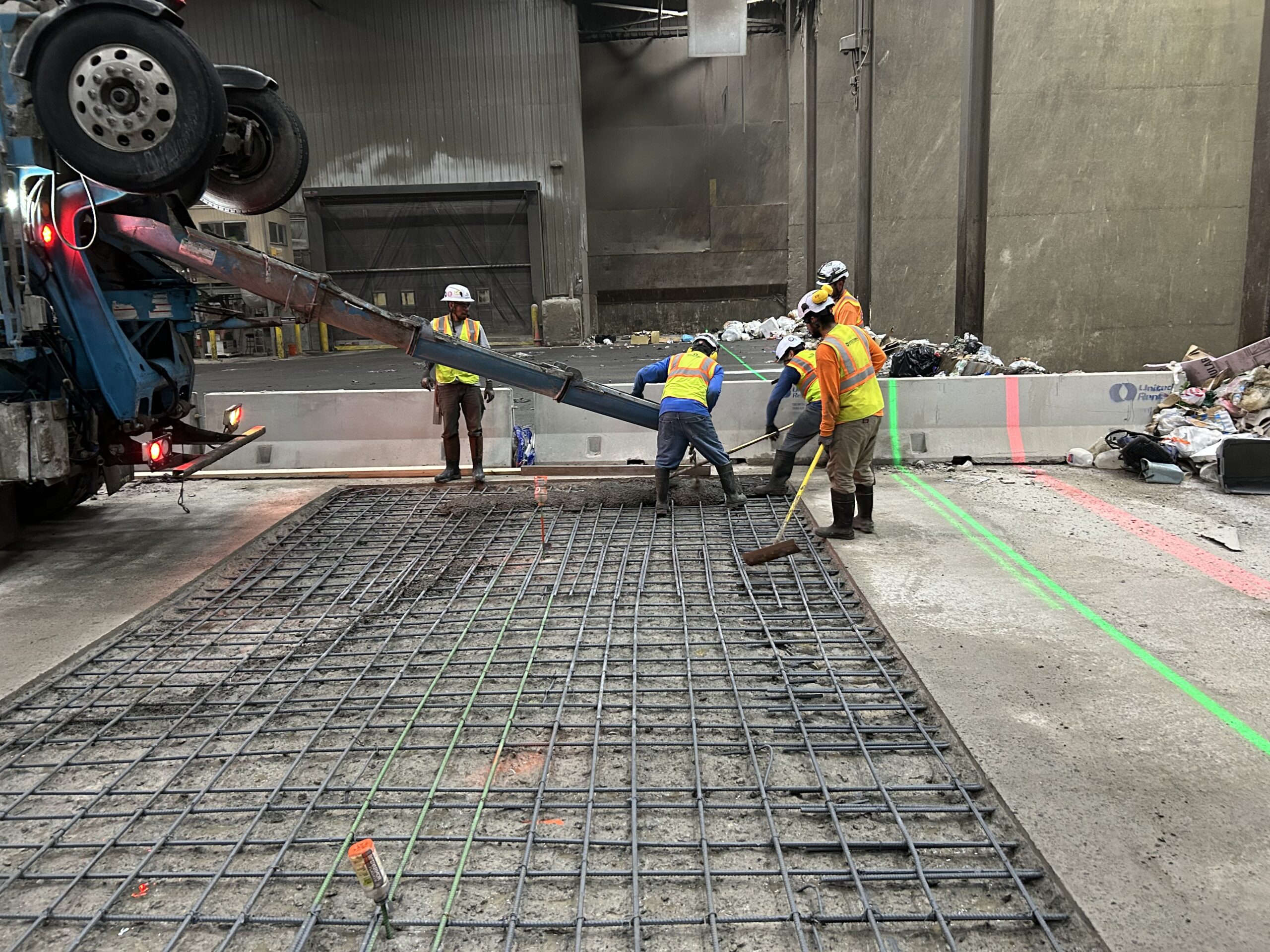 Western’s scope of work included 350 square feet of partial-depth repairs to the concrete floor and replacing existing concrete jersey barriers with a 25 ft x 4 ft wall extension for visiting tour groups to observe the waste management process safely.