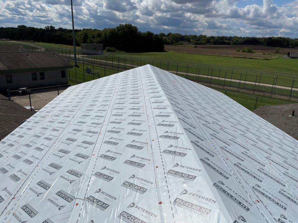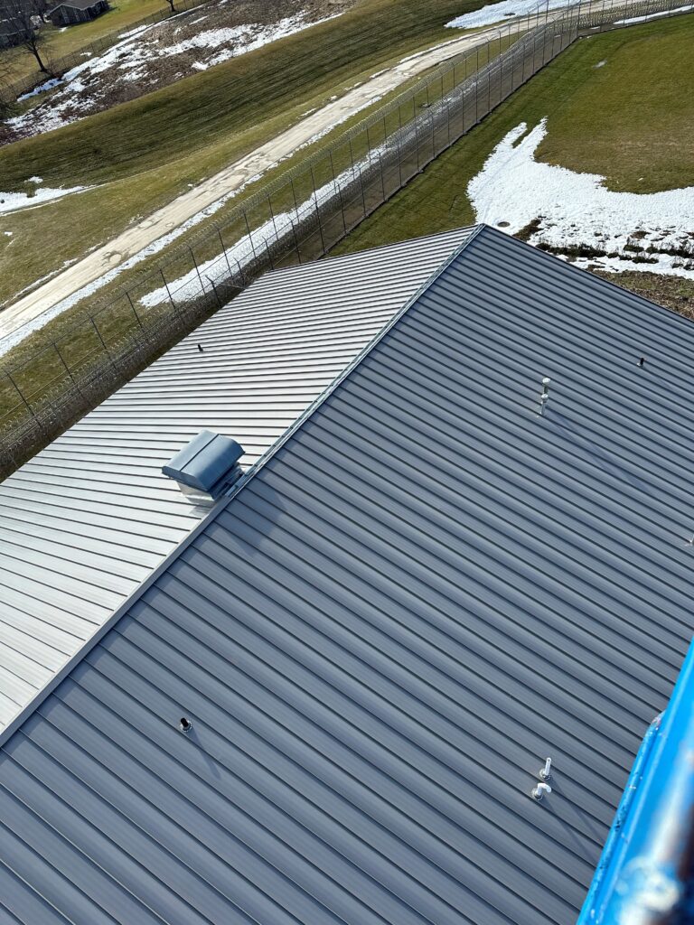 The facility’s roof had weathered shingles that were disintegrating and blowing off. The Illinois Department of Corrections hired Western in March 2023 to replace over 110,000 sq ft of roofing on six housing pods and the maintenance and security buildings.