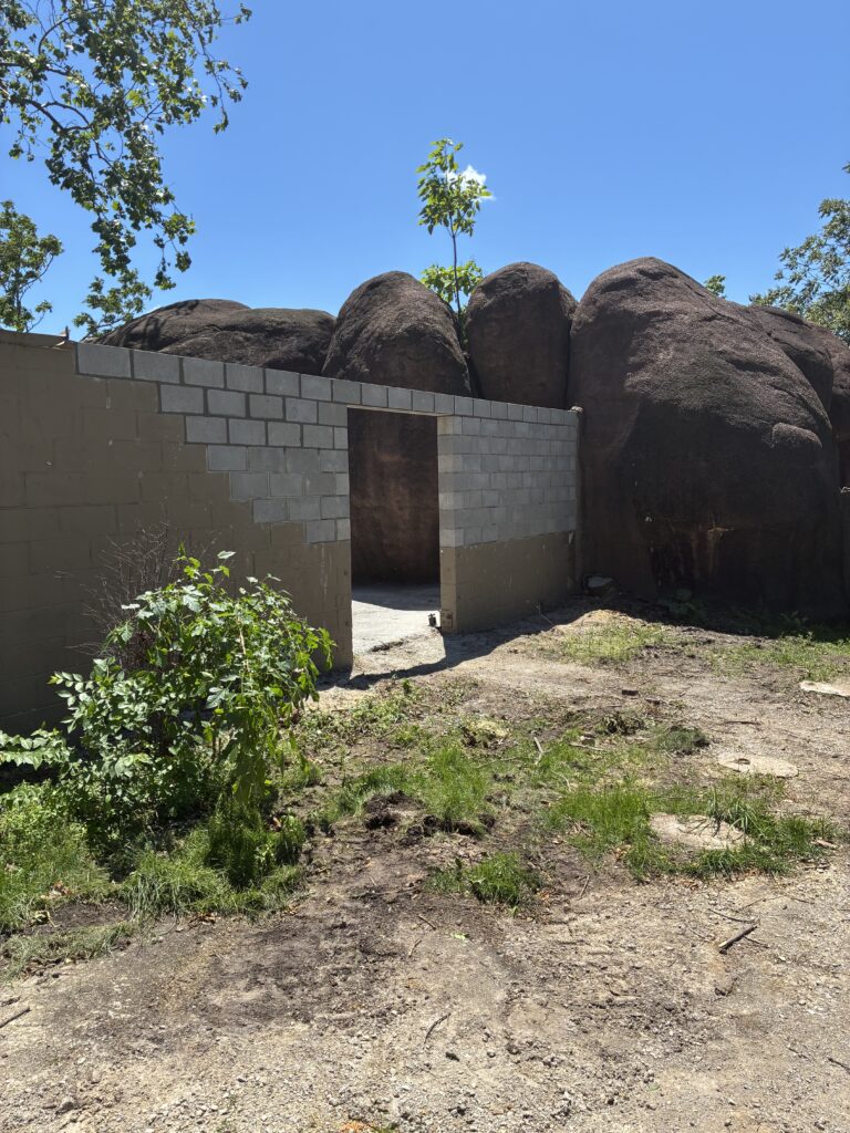 Zoo officials reached out to Western following the tornado to assess the damage. Western’s restoration experts determined that the majority of the concrete block enclosure wall and approximately 100 square feet of the brick serpentine site wall needed to be removed and rebuilt.